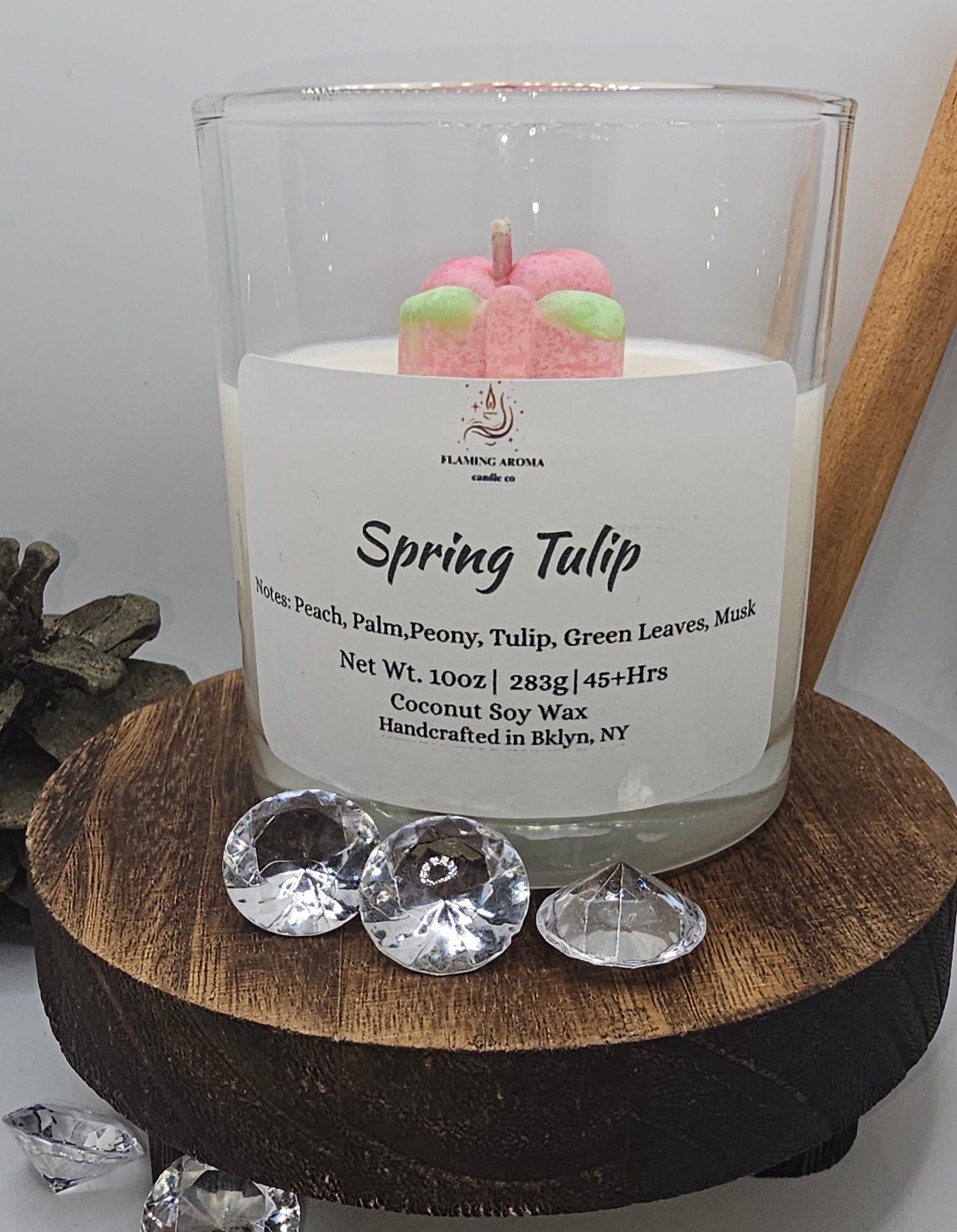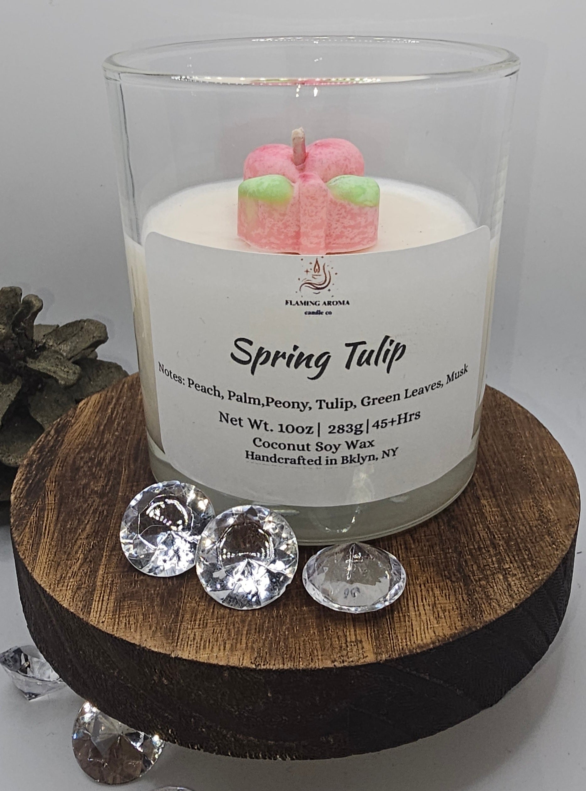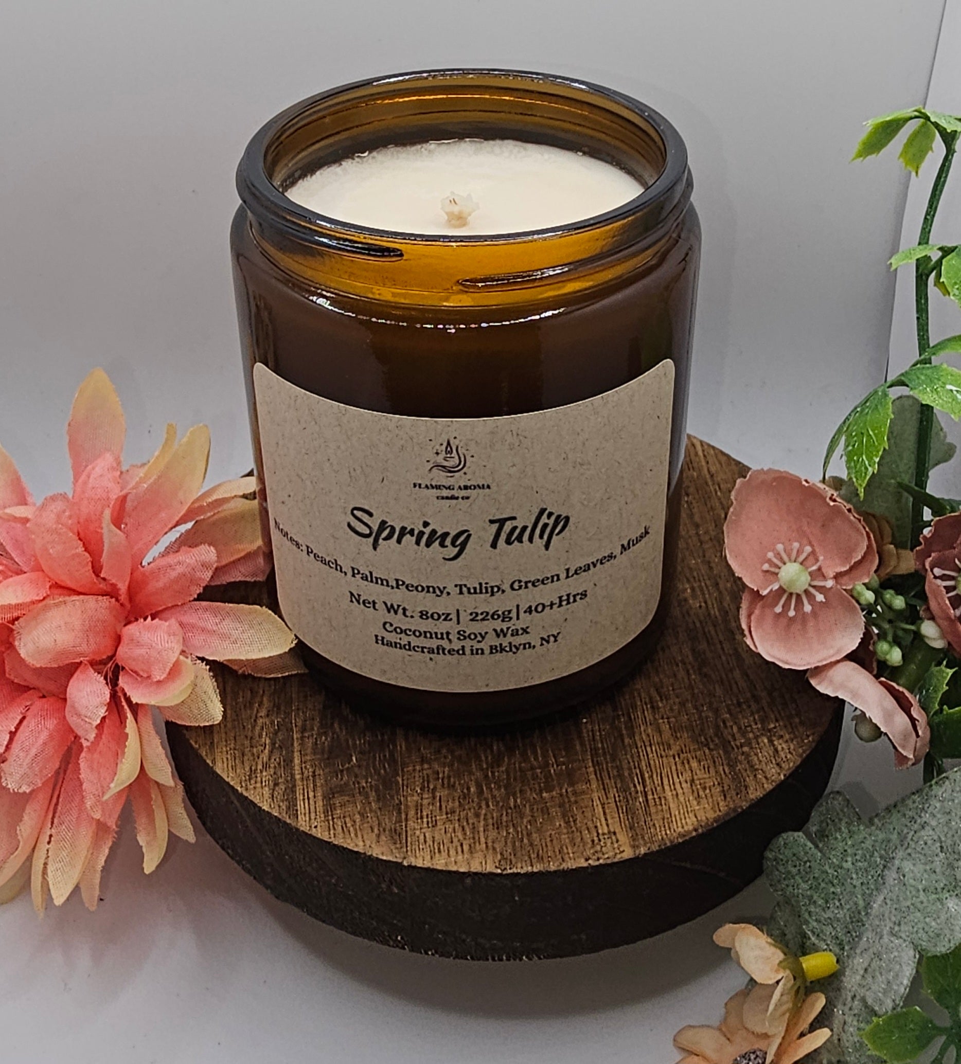 Spring Tulip tells the story of a quiet spring morning, captured in a fresh floral candle. Open windows, crisp air, and a soft breeze carry hints of ripe peach and clean green leaves. As the day unfolds, tulip and peony notes bloom gently, creating a light, airy floral scent. A smooth touch of musk settles in last, warm and comforting, like sunlight on the skin. Perfect for spring home fragrance, this candle brings a clean, natural floral aroma that feels fresh, calming, and beautifully seasonal. 🌷